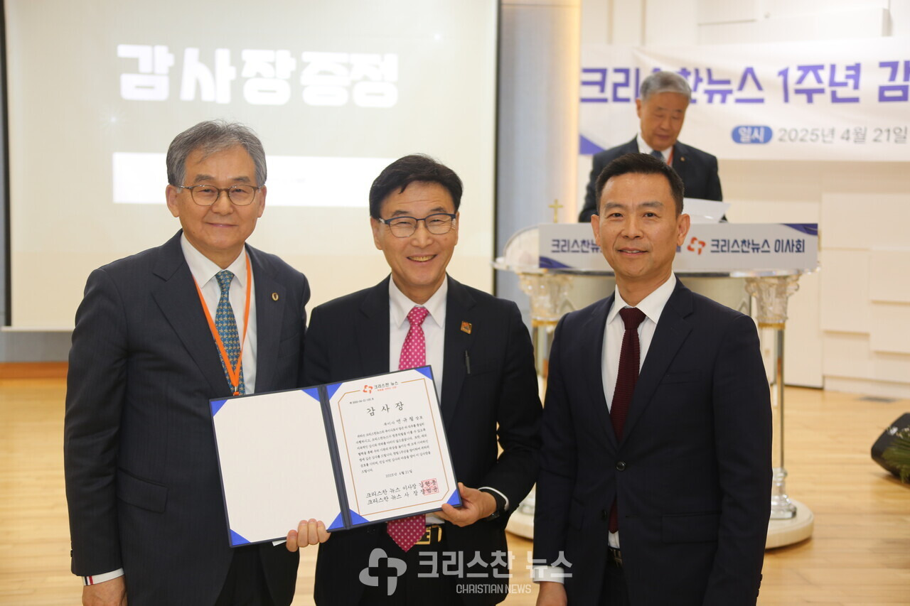 크리스찬 뉴스를 위해 힘쓴 유영호 장로(부이사장)과 연규철 장로(이사), 이성인 장로(이사)에게 감사장과 선물을 증정했다.